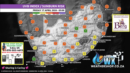 Below is a UV-index map as provided for by www.sawx.co.za