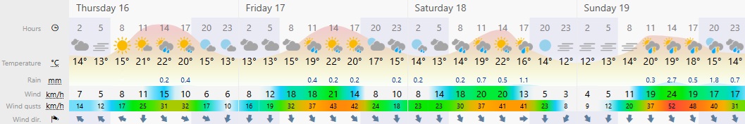 Updated 4-Day forecast with as extracted from Windy.com