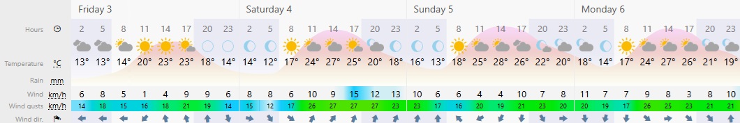 General 4-day Forecast for the Victor Khanye Local Municipal area based on the ECMWF forecast model (from Windy.com)