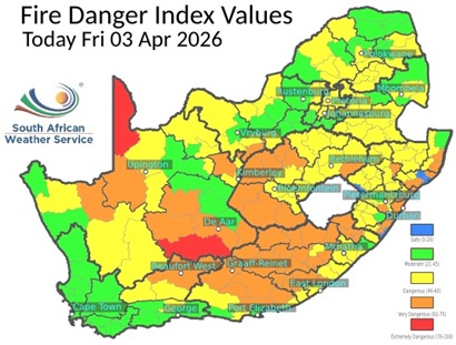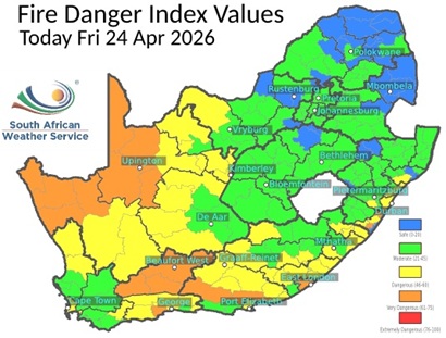 The SA Weather Services are temporarily offline and the FDI for today have not been released.
