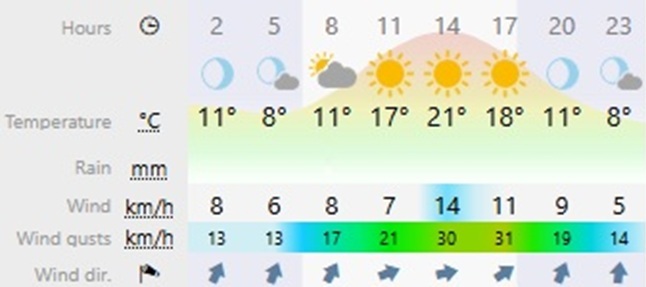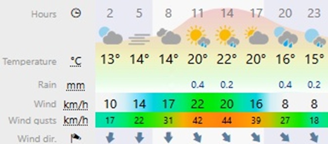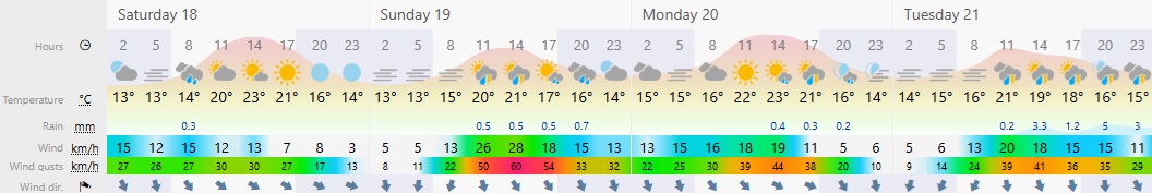Updated 4-Day forecast with as extracted from Windy.com