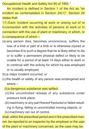 You can also click on this link to download the administration guidelines of incidents under the National Environmental Management Act (NEMA) from the Department of Environmental Affairs.