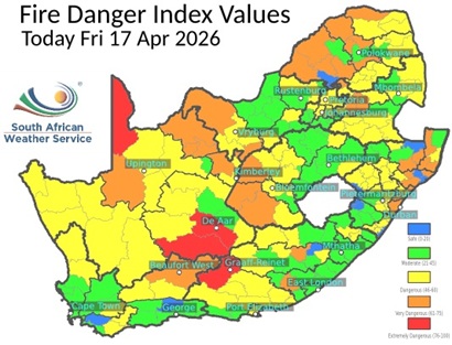 The SA Weather Services are temporarily offline and the FDI for today have not been released.